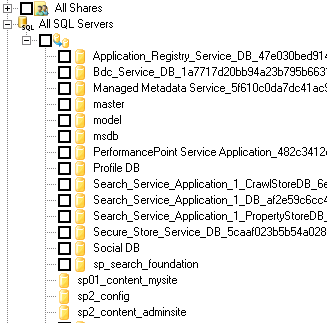 All relevant SharePoint databases are selected by automatically. There is no need to select those one-by-one or by Database Protection group(s).