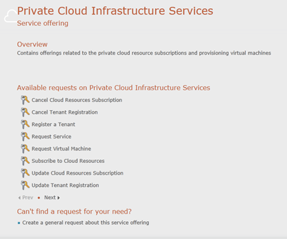 The System Center Cloud Services Process Pack offers a self-service experience to facilitate private cloud capacity requests from your business unit IT application owners and end users, including the flexibility to request additional capacity as business demands increase.