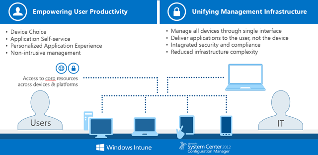 Windows Intune and Configuration Manager 2012 SP1 leverage you the capability to create and apply your governance by Settings Management. With settings management your able to deploy policies (Configuration Items) to mobile devices which are enrolled in your company.