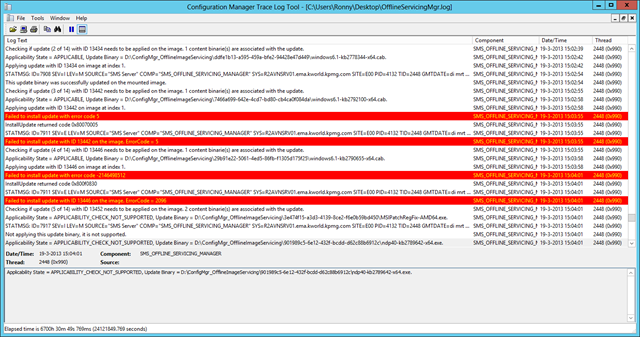 Checking if update (4 of 14) with ID 13446 needs to be applied on the image. 1 content binarie(s) are associated with the update.    SMS_OFFLINE_SERVICING_MANAGER    19-3-2013 15:03:55    2448 (0x0990)