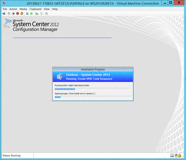- When finished the wizard the process of creating a VHD based on your create Task Sequence has started.