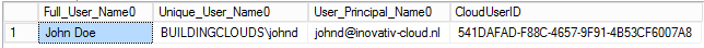 6. Now John Doe has been added to the Windows Intune we will check again his CloudUserID. This time John Doe has an CloudUserID which was synced back from Windows Intune services by the Windows intune Connector.
