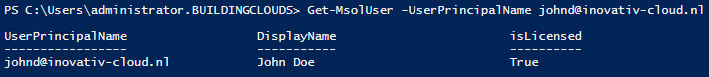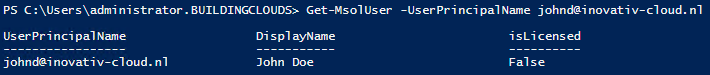 The license info this far is applicable if you’re Office 365 enabled user or in a scenario using Microsoft Intune in a standalone configuration. When enabling Office 365 for John Doe and check again his license status, it has changed to True.