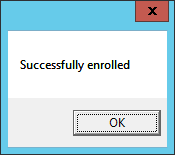 When completed successfully you will prompted with the message-box Successfully enrolled.