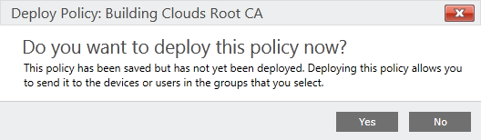 • When you are finished, click Save Policy. You’ll be prompted to deploy the created Trusted CA certificate profile policy.