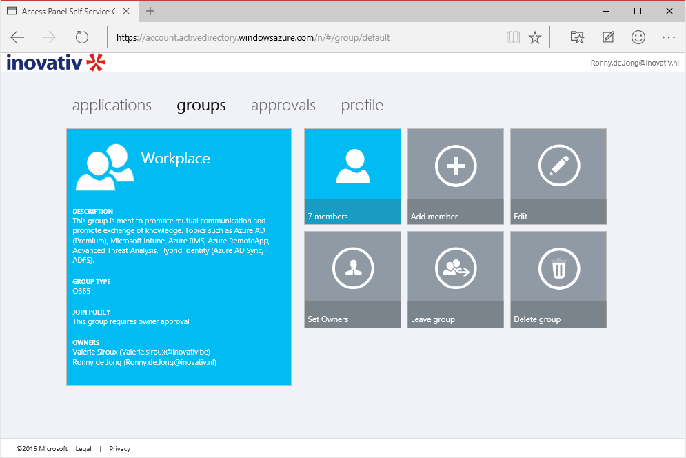 The power of Microsoft’s cloud platform is the integration of it’s online cloud solutions like Azure, Office 365, Microsoft Intune and CRM. Combining the strength of Office 365 Groups with Self-Service group management with Azure Active Directory Premium provides you even more capabilities.