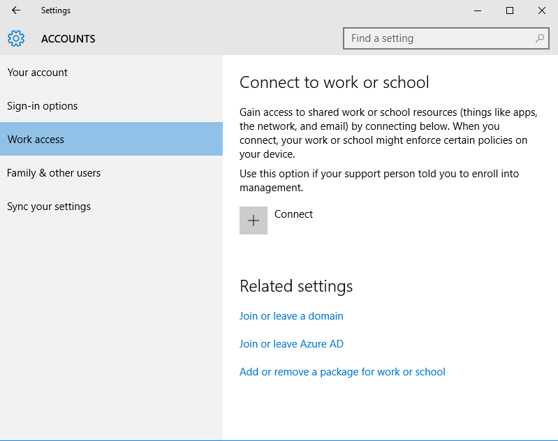 Once signed-in using my Azure AD company account (which is a federated account from on-premise AD) my Windows 10 laptop is successfully joined to Azure AD.