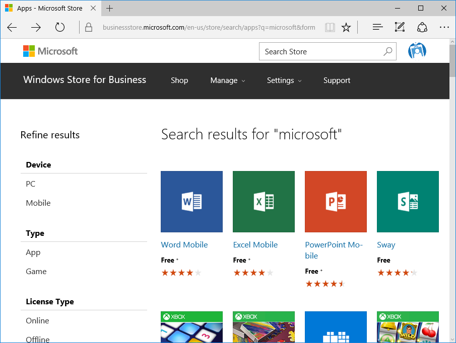 For more information, see Manage settings in the Store for Business and Manage apps.