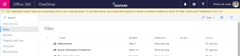 With the introduction of Session Controls, part of Conditional Access, organizations are able to grant access to corporate resources without losing control of corporate data on unmanaged devices. Currently the user experience of unmanaged scenarios is limited compared to fully managed devices. Together with App protection policies (aka Windows Information Protection) this is another step forwards improving the user experience in unmanaged scenarios.