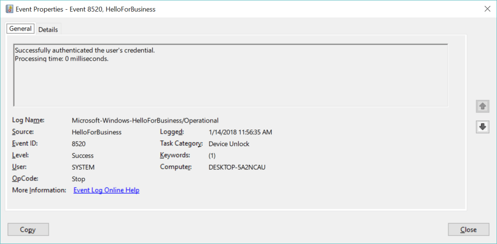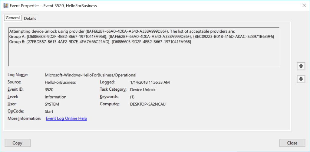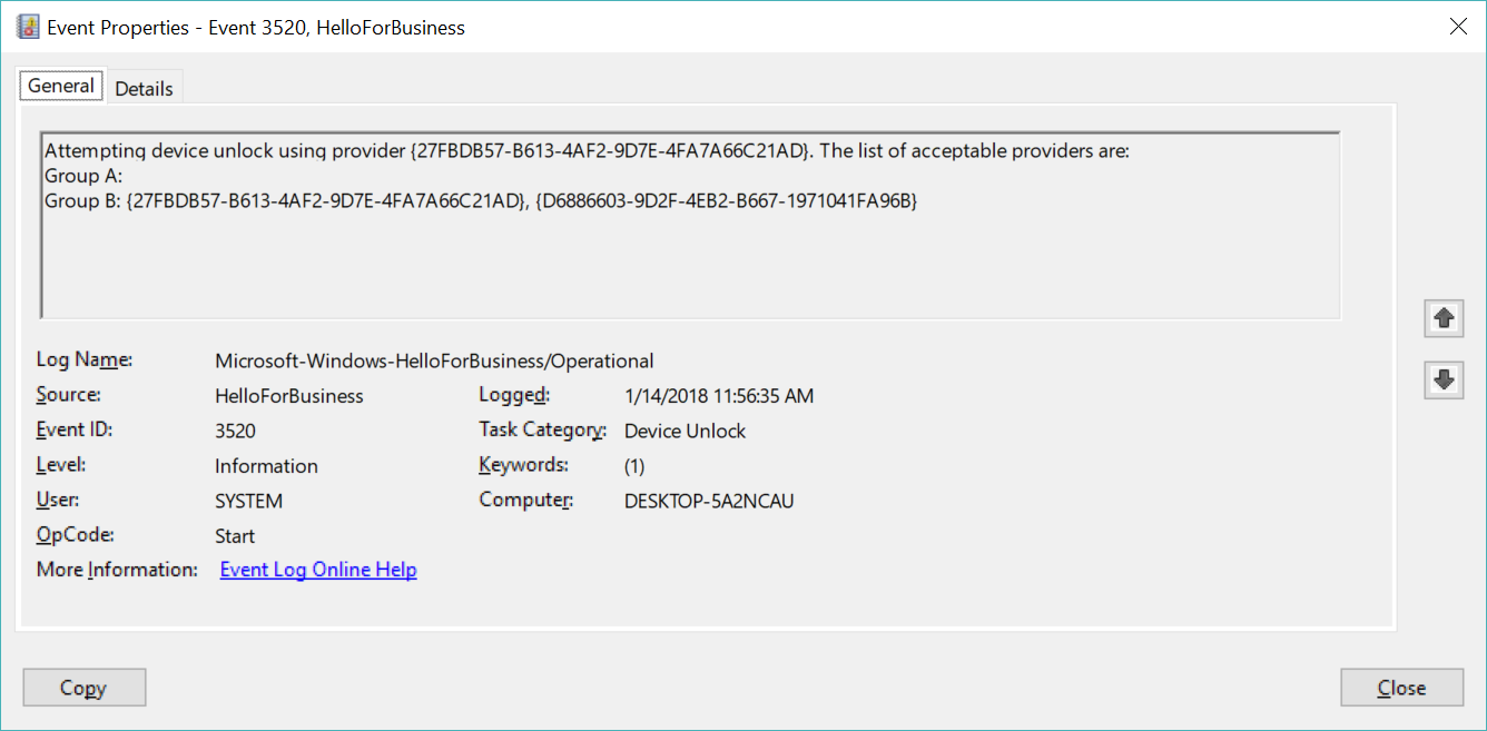 In case of issues with Windows Hello for Business, the Windows  Eventlog is a valuable startpoint to start your troubleshooting journey.