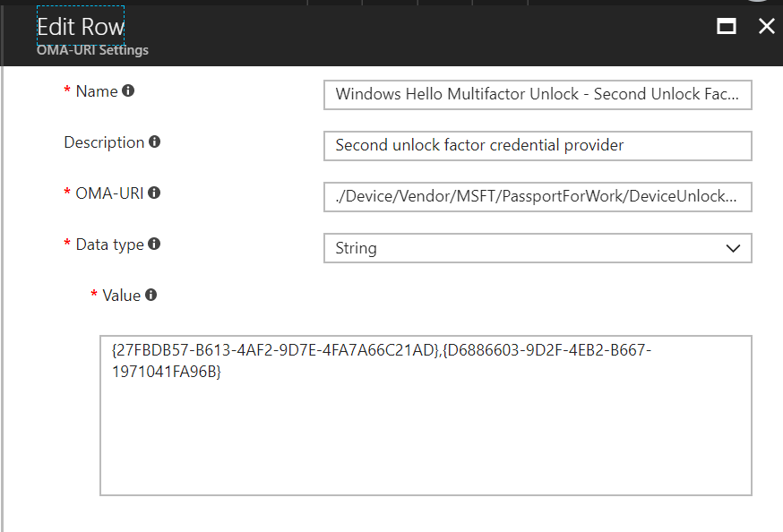 OMA-URI: ./Device/Vendor/MSFT/PassportForWork/DeviceUnlock/GroupA