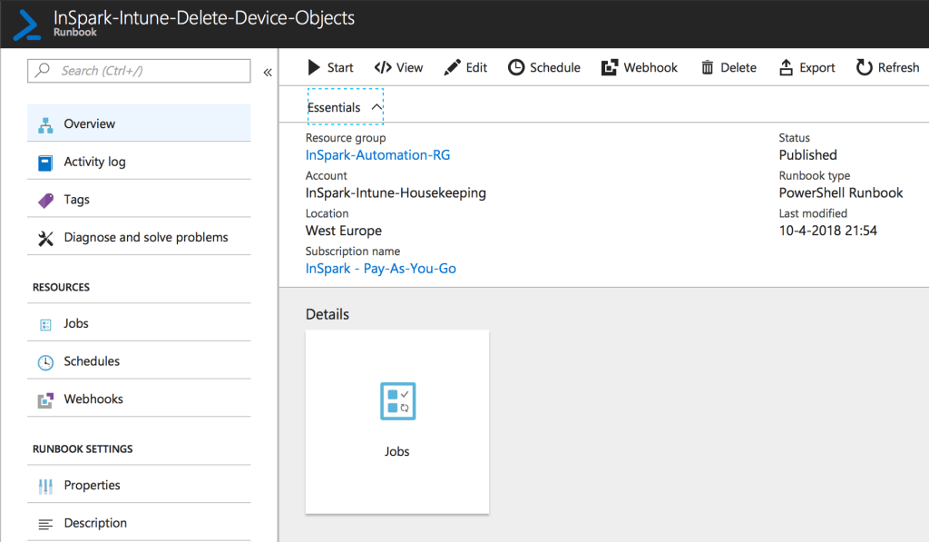 Now we have validated the solution we can schedule one or multiple runbooks with different criteria and just monitor the jobs to keep your Microsoft Intune tenant(s) clean & tidy.