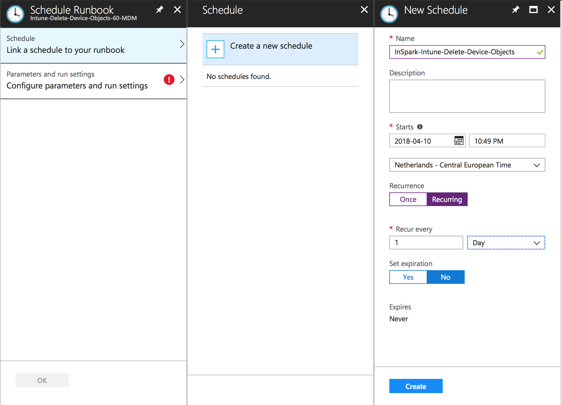 After the Runbook has been published we can schedule it. By scheduling the runbook, obsolete device objects can be deleted on a recurring base. Your Intune tenant hasn’t be that clean and tidy as never before!