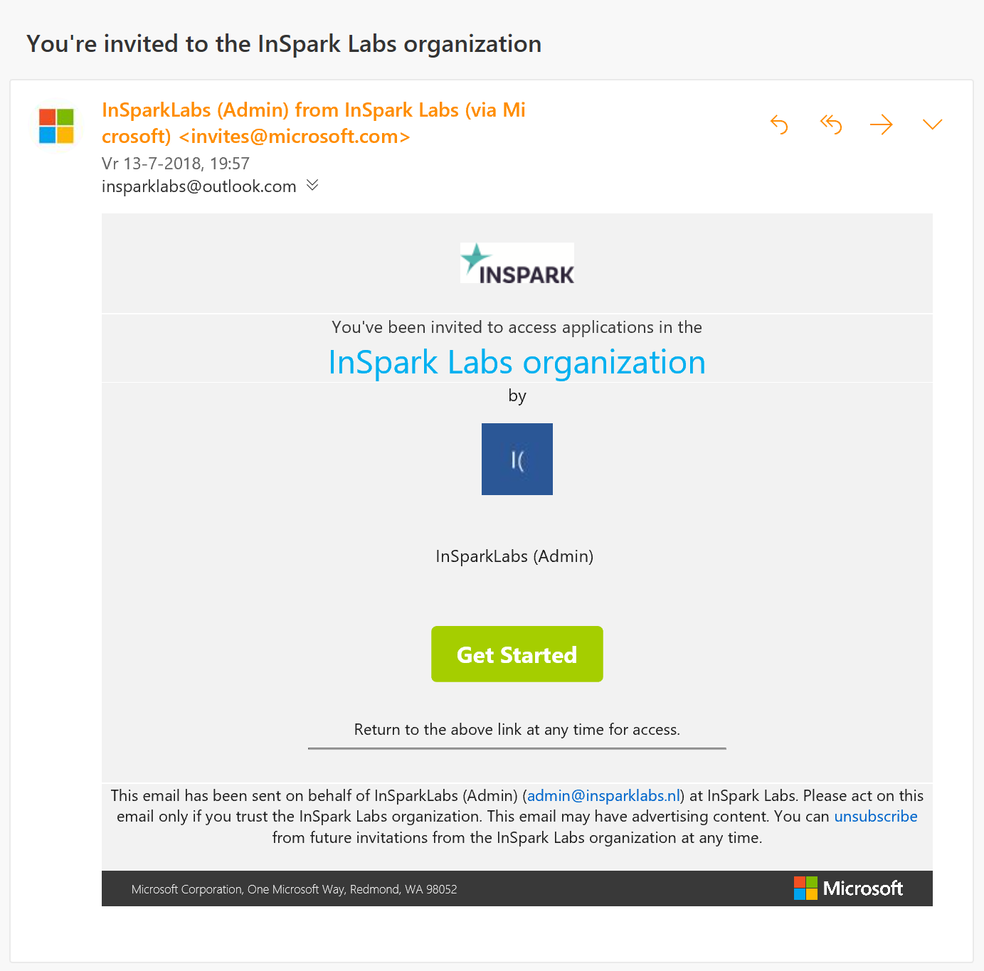 - Accept the invitation received as administrator of the Visual Studio subscription (B) to access the new Azure AD tenant (A);