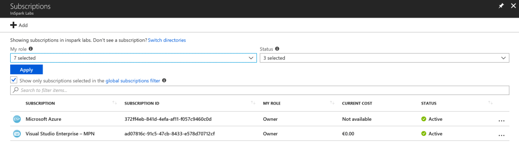 *In this post we used an MSDN subscription as an example, which is not recommended for enabling production workloads.